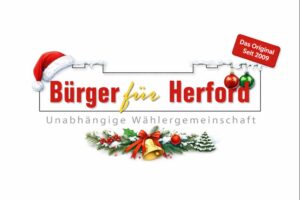 Liebe Herforderinnen und Herforder, wir wünschen Euch und Euren Familien ein besinnliches Weihnachtsfest, ruhige Feiertage und Zeit zum Durchatmen. Für das neue Jahr wünschen wir Euch Gesundheit, Zuversicht und einen guten Start. Möge es für unsere Stadt Herford von Respekt, konstruktivem Austausch und positivem Zusammenleben geprägt sein. Herzliche Grüße Bürger für Herford